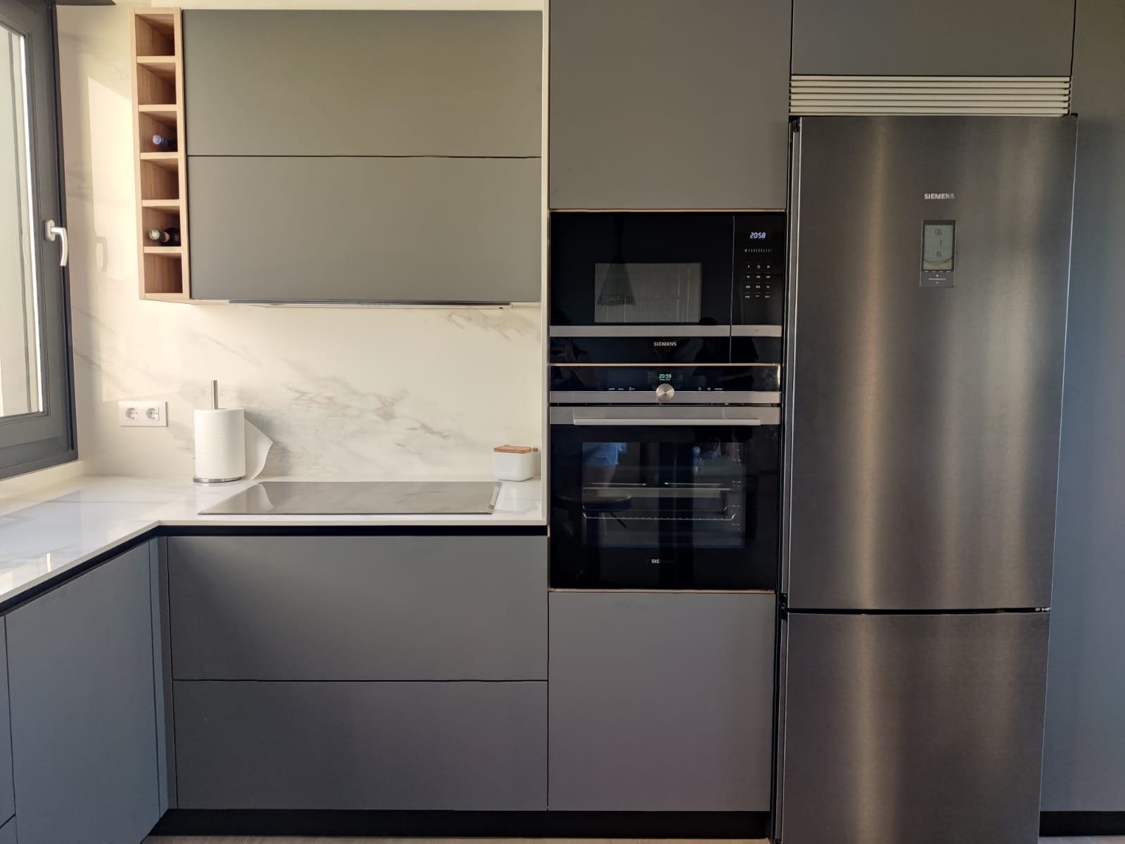 La instalación se realizó dentro del plazo previsto, bajo supervisión directa, y con atención a cada detalle. El resultado final fue una cocina de alta calidad, completamente integrada al nuevo estilo del piso, y una experiencia de trabajo cercana, accesible y profesional para los clientes.